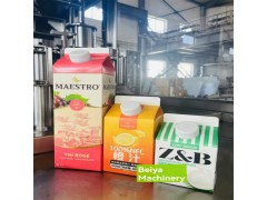 3.灌裝機:人工放盒至軌道→頂部預折→灌裝→頂部封合成型→打印日期→屋頂包產品