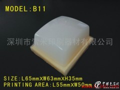 供應索米A/B/C/T電器標牌專用移印膠頭/電器銘牌專用移印膠頭本司移印膠頭用法國進口移印矽膠等原料,并用印刷表面精制的水晶模制成,分A、B、C、T四個系列,多款圓形、長形、方形、異形、定做小膠粒及組合小膠粒可供選購,主要特點如下:1、彈性及柔韌性好,膠質細膩,印刷表面沒有雜質及顆粒,對于平面、彎曲面、不規則面、印刷小面積圖案、微細線圖案和不同的材質,均可得到理想印刷效果。2、沾墨脫墨完全,容易將圖文轉印于產品上,印后極易清潔。3、外形尺寸質量穩定,光澤度高,彈性好,抗撕性高,不易變形及損壞,使用壽命長。4、可按客戶要求的不同規格移印膠頭或來樣按樣制作。使用我司新移印膠頭時,建議先用酒精或白電油等腐蝕性弱的溶劑擦拭膠頭印刷表面(或者先用細砂紙在印刷表面擦幾次,再用弱溶劑擦干凈,切忌用開油水或天那水浸泡移印膠頭印刷面,因為會縮短膠頭使用壽命和影響印刷質量),再在鋼板圖案位置擦上弱溶劑,讓膠頭上下沾壓鋼板上的弱溶劑20次,再用弱溶劑擦拭一遍膠頭表面后即可使用。選擇和使用移印膠頭小貼士:1、圓形膠頭受力均勻,還原圖文好,且較為耐用;2、曲面移印選擇膠頭形狀跟曲面相近的為好;3、根據圖文的印刷面積選擇適當軟硬度的膠頭;4、選擇膠頭越軟,移印的次數,耐磨性及耐溶劑性都會降低及減少,移印產品的次數也會相應減少;5、脫模后的膠頭放置3天,使用效果較佳。如有條件,放入冰箱存放,其使用效果更佳;6、*好用洗面水、工業酒精或白電油清潔膠頭表面等等。有[供應索米A/B/C/T電器標牌專用移印膠頭/電器銘牌專用移印膠頭]方面的問題,隨時歡迎來電咨詢及索取相關資料。