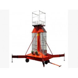 套缸式升降機(jī):也叫做套缸式升降平臺(tái),是一種多用途的高空作業(yè)機(jī)械,其功能將載有作業(yè)人員和使用器材的平臺(tái)送到指定高度進(jìn)行空中作業(yè)的特種工程設(shè)備。這種設(shè)備被廣泛用于工礦車間、高大廳堂、倉(cāng)庫(kù)、車站、廣場(chǎng)等高空作業(yè)。整機(jī)由平臺(tái)、伸縮油當(dāng)啟動(dòng)電機(jī)時(shí),有電機(jī)帶動(dòng)齒輪泵供油,油液經(jīng)單向閥及電磁通道輸入油缸,伸縮油缸則逐節(jié)上升,缸、單梯式或雙梯式防轉(zhuǎn)機(jī)構(gòu)、底盤油箱、支腿、行走輪等組成。平臺(tái)有伸縮油缸直接頂升,當(dāng)平臺(tái)升到高度時(shí)系統(tǒng)壓力也就達(dá)到了額定工作壓力,此時(shí)有溢油閥卸荷,油壓保持在恒定的工作壓力,停機(jī)后單向閥保壓,平臺(tái)便停留在的工作位置,平臺(tái)可根據(jù)現(xiàn)場(chǎng)的作業(yè)高度在高度以下任意位置停留。