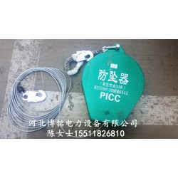 防墜器控制系統采用特種鋼,并經特種處理,質輕、耐磨、耐腐蝕、抗沖擊,外殼采用鋁合金,質輕,不老化。安全繩選用用鋼絲繩。吊繩、安全帶,均做阻燃處理,耐200℃高溫。