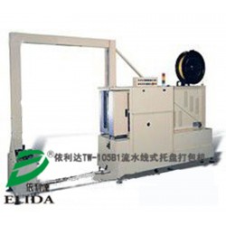 依利達(dá)TW-105B1流水線式托盤穿劍式打包機(jī)(又稱為廣州在線式全自動棧板捆扎機(jī)/深圳卡板自動輸送捆包機(jī)/東莞托盤在線式捆扎打帶機(jī)/惠州棧板無人化打包帶包裝機(jī)械/佛山全自動在線棧板捆包機(jī)/珠海側(cè)邊冰箱捆扎機(jī)):針對棧板捆包而設(shè)計,實(shí)現(xiàn)無人化棧板自動打包;