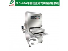 依利達ELIDA品牌ELD-48A 半自動盒式氣調保鮮包裝機(食品氣調保鮮包裝機 生鮮肉氣調保鮮機 熟肉制品氣調包裝機 魚類氣調保鮮包裝設備 家禽半自動盒式氣調保鮮包裝機械)又稱MAP,是當今世界食品保鮮包裝的一項熱門先進技術,它利用CO2、O2、N2等保護性混合氣體轉換包裝內的空氣,利用各種氣體所起的不同作用,抑制引起食品變質的大多數微生物的生長繁殖,并使新鮮果品蔬菜等植物性食品呼吸速率降低,從而使食品保鮮并延長保鮮期。包裝后的成品形狀為盒裝或袋裝,和適用于食品在超市小包裝零售,批發市場中大包裝的物流和銷售。