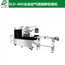 依利達ELIDA品牌ELD-48D 全自動氣調保鮮包裝機主要由機架、送膜機構,送盒機構、進料輸送帶,出料輸送帶,定位輸送帶,真空箱體,上下模具、保鮮氣體充配氣系統、氣動執行系統、加熱模溫控系統、電氣自動控制系統組成。.