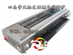 型號: 不銹鋼四爐頭 無煙燃氣烤燒烤爐 帶風機