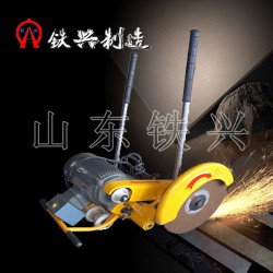 4、一只手拉動支配桿使電動鐵路切軌機DQG-4處于鋼軌上方,同時另一只手扶持另一支配桿,以防薄片砂輪撞擊鋼軌。