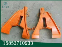 2、人字形礦車用復軌器使用時,必須安裝在拉車的前進方向,左右分開擺齊(要躲開魚尾板),有軌撐的要拆除,將安放復軌器尾部的石碴挖出,裝好串銷擰緊頂絲固定好,復軌器下部的空處用石碴,鐵板等墊硬,復軌器前端與鋼軌面接觸處,可墊少量棉紗、沙粒、木片等物,以防使用時滑行;