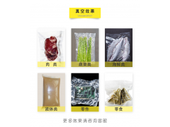 適用于各種塑料薄膜袋、復(fù)合膜袋、鋁箔袋的真空包裝。對各種肉制品、禽產(chǎn)品、醬菜制品、海產(chǎn)品、大蒜制品、山野菜、糧食、醫(yī)藥、生物制品、電子元件等各種固體、粉狀物、流體、半流體等進行真空包裝,已達到隔氧保鮮延長產(chǎn)品的保質(zhì)期,提高產(chǎn)品檔次。