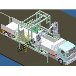 袋裝化肥全自動裝車機采用了機械手加皮帶輸送機的形式對物料進行裝車和碼垛工作。碼垛機械手將需要裝車的物料(袋料、箱料等)放置在皮帶輸送機上,通過皮帶輸送機將物料運送至預(yù)定裝車位置,再由機械手對物料進行抓取和裝車碼垛。