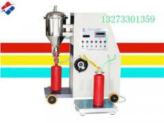 干粉滅火器灌裝機(jī)操作使用: 1、連接管路 首先將本機(jī)吸粉管與倉庫的圓錐型儲粉桶連接好,(儲粉桶錐度一般為3:2用戶可根據(jù)生產(chǎn)量自定儲粉 桶的大小)再檢查各連接管是否有松動。 2、保護(hù)裝置 連接好干粉機(jī)的保護(hù)接線。稱臺接地線是為了消除靜電而設(shè)置的。由于干粉灌裝過程中產(chǎn)生靜電,且對 稱臺傳感器及顯示儀干擾,所以必須接地。接地裝置是連接電器與大地的過渡裝置,稱臺接地線與埋入 地下的金屬導(dǎo)體或?qū)w組連接,接地電阻值不應(yīng)大于4歐姆。此裝置用于稱臺及顯示儀消除靜電干擾,經(jīng) 多次實(shí)驗(yàn)是比較有效的一種方法。 3、安裝電源 接通電源,本機(jī)采用單相兩線制供電。若經(jīng)漏電保護(hù)器接出的電源,單相兩線必須經(jīng)同一個(gè)漏電保護(hù)器 輸出。試機(jī)先點(diǎn)動幾次【運(yùn)行】按鈕,查看真空泵電機(jī)是否按機(jī)體所標(biāo)箭頭方向旋轉(zhuǎn),然后把電機(jī)與真 空泵傳動三解帶上好(由于出廠前已將三角帶卸下,電機(jī)必須按箭頭方向轉(zhuǎn)動)。把滅火器筒體放在機(jī)體 臺面上,筒體上口和下粉口對接好,不得漏氣,過濾器總成閥門打開,手動吸氣閥門。