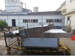 采用SUS304不銹鋼制作,符合食品行業使用標準。運行平穩,噪音低。由人工布料,經過上下層皮帶整壓以后,把軟包裝的高凸部分壓平,此設備壓料的厚度可根據不同的包裝上下自由調節,高度可設定為2mm。