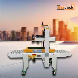 ● 兩側皮帶驅動,采用即貼膠帶封口,上下封箱,快速,平穩,且封箱效果平整、規范、美觀