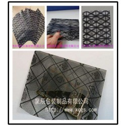 由透明抗靜電PE薄膜。表面印刷黑色網狀導電油墨制成。