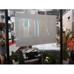 全息投影幕,又叫全息背投幕、透明背投幕,是采用了全息技術的新一代創新型背投屏幕,能提供空中動態顯示,透明的顯示效果允許觀看者可以觀看屏幕上圖象的同時還可以看穿屏幕,外觀看起來就像一塊透明玻璃,及具創新性。單片穿透式屏幕,內部具有精密的光學結構。具備高透光性、高亮度、高對比度的特點。具有同時呈現實景與影像的功能,這種全新的互動展示技術將裝飾性和實用性融為一體,是一款時尚的展示工具。
