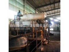 料袋用拆垛機器人將袋料放到輸送帶上,輸送帶將物料送入自動破袋機的入口,在這個入口處蓋有一個收塵罩。料袋從傳送帶上滑下,進入割刀裝置,割刀是由兩組6片圓刀組成,將料帶切割成條狀,破損的料袋和里面裝有的物料一起通過溜槽滑入篩分裝置中。通過圓筒篩的旋轉,料袋漏到底部被完全清空。圓筒篩腔內的槳板反復地提起已清空的料袋,這樣,料袋就完全與物料分離了。自動破袋機傾斜的槳葉幫助料袋移至圓筒篩的出口,接著它們滑入已裝配的廢袋打包機器人內。