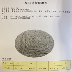 新創冶金是一家生產硅鐵粉20年之久的硅鐵粉廠家,旗下生產的低硅鐵粉270D硅含量在14-16%,鐵元素含量在80-83%是非常理想的選礦重介質材料,可進行有效的礦物篩選,配備實驗室確保低硅鐵粉含量標準,符合各種用途所需。
