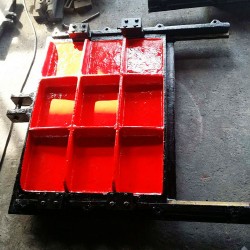 門(mén)體一般采用面板與加強(qiáng)肋的結(jié)構(gòu),面板可做平面或拱形。門(mén)體一般整體鑄造和機(jī)加工,但尺寸較大的可采用分塊組成式。門(mén)體上一般采用整體式金屬止水,兼作支承滑塊,金屬止水用同材料制作的沉頭螺釘緊固在門(mén)體上,螺釘頭部與止水工作面一起精加工,一些尺寸較大的也可“P”形橡皮止水。
