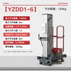 單柱鋁合金升降機:單柱鋁合金升降機是鋁合金升降機按用途分類之一,該系列產品為室內型,廣泛適用于**酒店,大型超市等各行業大廳、廠房內的高空作業, 具有升降平衡,操作方便,能進入一般門廳,可隨意進出電梯且耗電少、無污染、工作時不傷 地面,可用于貼墻工作及探出作業。單立柱式鋁合金電動升降機配上龍門跨架附件,非常適合于影劇院、會堂、教堂等的維修工作。該龍門跨架組裝容易,操作省力,移動靈活,可跨越高度達1.1m的固定座椅等障礙物,并可在臺階上穩定 作業。 高強度矩形鋼管制作, 剛性、穩定性好。 配有萬向腳輪,機動靈活。 兩端架跨距可調,能適 用于跨越不同障礙物的要求。 兩端架垂直可調,可用于一定坡度的斜面或臺階上作業。