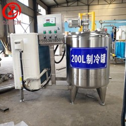 制冷罐全部采用食品*不銹鋼制造,耐腐蝕,經氬弧焊接,精密拋光,美觀大方。采用先進的電腦溫度控制器,實現制冷系統溫度的自動控制。攪拌時間可根據用戶要求設置,設有自動和手動開停。(食品加工機械廠家Tel:155*5361-8501)
