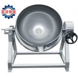 夾層鍋(食品加工機械廠家Tel:150*5447-0262)又名蒸汽鍋、蒸煮鍋、夾層蒸汽鍋。通常由鍋體和支腳組成。鍋體是由內外球形鍋體組成的雙層結構形式,中間夾層通入蒸汽加熱。有固定式、可傾式、攪拌式等樣式。夾層鍋具有受熱面積大、熱效率高、加熱均勻、液料沸騰時間短、加熱溫度容易控制、外型美觀、安裝容易、操作方便、安全可靠等特點。