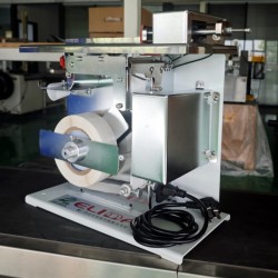 三、標簽粘貼方法。機器自動剝離標簽到達設定長度后,用手將盒子朝標簽推行,即可自動完成直角粘貼。