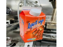 屋頂盒紙盒片→底部預成型→底部加熱→底部壓封成型→超聲波加蓋→頂部預成型→灌裝→頂部封合成型→打印日期→屋頂包產品。