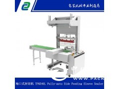 本設備為全自動L型袖口式封切熱收縮包裝機,包括:一臺全自動L型袖口式封切機和一臺PE膜熱收縮包裝機。主要針對飲料、日用品、食品、陶瓷等體積較大的物體進行袖口式套膜封切包裝,特別適合對大型紙箱的套膜包裝。如果要完成整套的熱收縮包裝過程,請選擇我司生產的恒溫(PE)收縮爐配套使用。