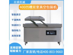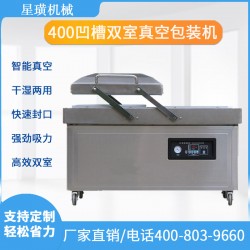 8.本機有2個工作室,單個工作室的*大封口長度為400mm。工作效率是單室真空包裝機的1.5倍。
