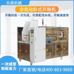 自動完成開箱、成形、下底折葉折曲.并現(xiàn)時完成下部分膠帶粘貼,將疊成紙板的箱板自動打開,箱子底部按一定程序折合,并用膠帶密封后輸送給裝箱機的專用設(shè)備。自動開箱機是大批量紙箱自動開箱、自動折合下蓋、自動密封下底膠帶的流水線設(shè)備。操作方便,降低包裝成本。可配熱熔膠機封箱.