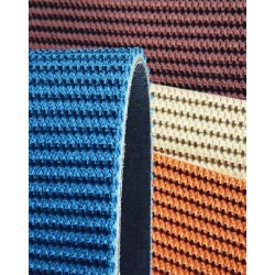 花紋輸送帶 是由工作面為花紋狀的復蓋膠和非工作面為平面的復蓋膠與帶芯構成的傾角輸送帶。