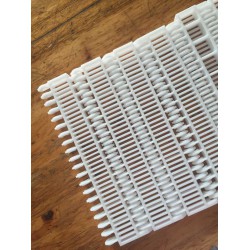 蓄電池專用網(wǎng)帶為客戶提供的一種安全、快捷、維護(hù)簡單的輸送方式。由于使用模塊式塑料輸送帶,傳動方式系采用鏈輪驅(qū)動,所以輸送帶不易蛇行、偏斜,并且由于帶子厚實(shí)可以經(jīng)得起切割、碰撞,及耐油、耐水等特,讓您使用時不致在維修保養(yǎng)上產(chǎn)生困擾,尤其在更換輸送帶上更簡潔方便。蓄電池專用網(wǎng)帶在使用中具有耐高溫、耐腐蝕、耐酸堿抗、氧化及耐磨損性能、自重輕、溫度范圍廣、防粘性佳。可加檔板加裙邊、提升轉(zhuǎn)彎角度大,容易清洗,防油性強(qiáng)、維修簡單。產(chǎn)品采用**百醛類聚合物等高分子材料制作而成,可耐140度高溫及零下90度低溫用于冷卻。輸送帶的材質(zhì)有: pom(聚甲醛) PP(聚丙烯)、PE(聚乙烯)、ACETAL(乙縮醛)、NYLON(尼龍)等材料。(某些帶型符合FDA、USDA標(biāo)準(zhǔn),因此廣泛用于輪胎加工業(yè)。)結(jié)構(gòu)形式有:水平直線輸送、提升爬坡輸送等形式,輸送帶可增設(shè)提升擋板、側(cè)擋板。