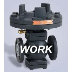 The gas valve means for the gas system pipes, adjust the spring pressure is set by adjusting the outlet pressure, the use of the diaphragm sensing changes in outlet pressure, the main valve throttling portion the size of the flow area through the pilot valve to open and close the drive piston, vacuum regulator function. Mainly used in air, oxygen, nitrogen, carbon dioxide, hydrogen, liquefied petroleum gas, natural gas system.