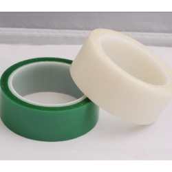 PET綠色高溫膠帶 耐酸堿膠帶 基材:PET 厚度(um):70 張力kgf / mm>10 剝力 gf / in750 耐溫度 °c 180-230 顏色:紅.黃.蘭.綠都有 PCB保護(hù)、耐高溫、離型處理拉方便。常有厚度為0.05/0.06/0.08等.