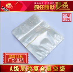 真空袋(亦稱尼龍袋),其材料結構一般為:NY/CPE或PET/NY/CPE;也可根據客戶要求訂做具有防靜電功能。此產品具有防靜電功能好,抽真空效果佳,透明度高,透(氧)氣率低,防潮性能好,抗拉強度與耐穿刺強度高,易熱封,密封性好,不易老化,特點。主要用于五金,電元器件,有需要抽真空要求的情況下,印刷文字,圖案,商標等。助您提升企業形象。