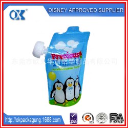 自立吸嘴袋是指一種底部有水平支撐結構,頂部或側部帶有吸嘴的軟包裝袋,它的自立結構能不倚靠任何支撐以及無論開袋與否均可自行站立。自立吸嘴袋的優點是一種相對新穎的包裝,相對于方便攜帶。在提升產品檔次、強化貨架視覺效果、使用便利、保鮮和可密封性等諸多方面占有優勢。
