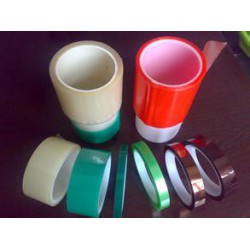 PET耐高溫絕緣膠帶是在電工級低收縮率聚酯膜基材上先涂上一層特制交聯底膠, 再涂上經過特別配制的進口有機硅壓敏膠,經專用設備烘干裁切制成。產品具有良好的耐熱性和絕緣性能,適合于F級絕緣電器、變壓器產品的線圈包扎、引出線包扎固定和烤漆遮蔽等。厚度:0.06mm-0.09mm,顏色:綠色、透明、紅色、金黃色等
