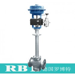 德國羅博特RBT進口氣動低溫調(diào)節(jié)閥由氣動薄膜執(zhí)行機構(gòu)和耐低溫的單、雙座調(diào)節(jié)閥兩部分組成。由調(diào)節(jié)器來的信號壓力輸入氣動薄膜執(zhí)行機構(gòu)的氣室,產(chǎn)生推力,通過連接桿件帶動閥芯,閥芯位置的變化使閥的流通截面積變化,實現(xiàn)對介質(zhì)流量的調(diào)節(jié)。適合于低于 -250℃狀態(tài)下工作,由氣動薄膜執(zhí)行機構(gòu)和帶長頸接管的閥體組成,長頸接管的作用是使閥桿密封出接近常溫下工作,并減少外界熱能傳入。為減少傳遞,長頸采用薄壁結(jié)構(gòu)。為確保調(diào)節(jié)精度,必須配用定位器。