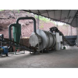 濕料由給料機連續均勻地輸送到內筒,通過螺旋揚料板拋撒并向前推進,另由中間打散裝置打散形成幕狀與熱量充分接觸。水分迅速形成蒸汽由引鳳機引出。烘干率達到70%的物料進入中筒、外筒。充分再接觸熱量達到烘干要求后進入出料倉。