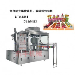 廠家直銷/ZCX自立袋灌裝旋蓋機、吸吸果凍充填包裝機該機型適用于自立袋裝、果汁、吸吸凍、辣椒醬、番茄醬、調味品、飲料、冰淇淋、日用化工品等的充填旋蓋。該機型具有理蓋速度快、套蓋精度高的特點,電機永磁限扭矩旋蓋具有旋蓋緊密和無損瓶蓋特點。本機實現了無袋不充填,缺蓋自動停機,送袋缺袋自動停機功能.