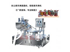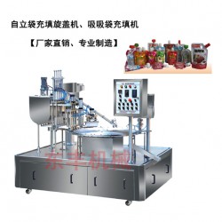 東豐機(jī)械廠直銷ZCX自立袋旋蓋機(jī)、吸吸袋充填旋蓋機(jī)該機(jī)型適用于自立袋裝、果汁、吸吸凍、辣椒醬、番茄醬、調(diào)味品、飲料、冰淇淋、巧克力、日用化工品等的充填旋蓋。該機(jī)型具有理蓋速度快、套蓋精度高的特點(diǎn),電機(jī)永磁限扭矩旋蓋具有旋蓋緊密和無(wú)損瓶蓋特點(diǎn)。本機(jī)實(shí)現(xiàn)了無(wú)袋不充填,缺蓋自動(dòng)停機(jī)功能。