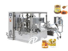醬料灌裝一體機采用活塞式伺服驅動原理,適用于調味品中的醬料,濃湯或者帶顆粒并且濃度較大的辣椒醬、豆瓣醬、花生醬、芝麻醬、果醬、牛油火鍋底料、紅油火鍋底料等較為粘稠醬類的灌裝,自動化程度高,機器能完成自動灌裝、自動取蓋上蓋,自動真空封蓋封口。gzjdt03jx