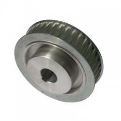同步帶輪一般由鋼,鋁合金,鑄鐵,黃銅,等材料制造。內(nèi)孔有圓孔,D形孔,錐形孔等形式。表面處理有本色氧化,發(fā)黑,鍍鋅,鍍彩鋅,高頻淬火等處理。精度等級依客戶要求而定。