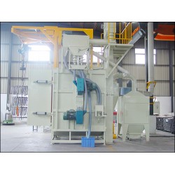 吊鉤式拋丸機分為單吊鉤和雙吊鉤,吊鉤式拋丸機由兩個吊鉤裝載工件交替進入拋丸清理室內。利用拋丸器將0.2~0.8的彈丸拋向工件的表面,使得工件的表面達到一定的粗糙度,讓工件變得美觀,或者改變工件的壓應力提高壽命。本機型廣泛應用于鑄造、建筑、、電機、機床等行業(yè)的中、小型鑄、鍛件的表面清理或強化處理。吊鉤式拋丸清理機為吊鉤式清理設備,由拋丸清理室、提升機、分離器、螺旋輸送器、兩個拋丸器總成、彈丸控制系統(tǒng)、吊鉤行走軌道、吊鉤系統(tǒng)、自轉裝置、地基、除塵系統(tǒng)及電氣控制部分等組成。
