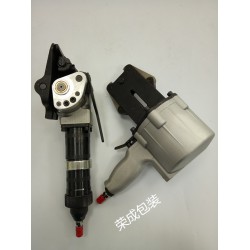 氣動鋼帶打包機,手提式鋼帶打包機,鋼帶組合型打包機,是由大功率氣動馬達為驅動力進行工作,收緊速度快,捆扎力度大,適合鋼帶的寬度16-19-32MM,配合專業的氣動咬扣器工作,咬扣也為氣動驅動,咬扣美觀,咬扣緊,不脫落,本機由臺灣技術組裝,質量性能優越,選者鋼帶打包機器,榮成包裝是你的選商家。