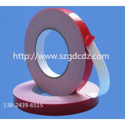 在PE發泡的基材上兩面涂上壓克力膠水而成的雙面膠。顏色主要有白色、黑色及灰色,離型膜(紅色、綠色、藍色、橙色),粘著力強、保持力佳、防紫外線、耐溫性、耐水性、耐溶性及可抗塑性。
