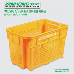 VNC系列反轉(zhuǎn)套疊物流箱是公司根據(jù)特殊客戶的需要,突破常規(guī)物流箱設(shè)計理念研發(fā)生產(chǎn)的一款新型實用的物流周轉(zhuǎn)箱。 VNC系列反轉(zhuǎn)套疊物流箱箱體為梯形結(jié)構(gòu),承重力強(qiáng)。載物時,能穩(wěn)固堆碼,不會損壞箱體內(nèi)的產(chǎn)品,空箱時,可以反轉(zhuǎn)180度互相套疊,從而*多可以節(jié)省50%的堆放空間。