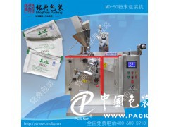 MD-50FA機械是針對流動性好的各類粉末、粉劑物料實現自動化包裝而設計的三對輥筒的包裝機械。該機可以實現三邊封口或四邊封口的包裝。配多套供料裝置也可以實現雙聯袋的包裝。