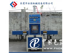 通過人工放料,高周波自動熔斷,切斷,定型的自動機械。工作時通過人工放料,放入工模位置上,按起動開關,底部工模滑板自動滑動到固定工作位置。機頭氣缸驅動工模下降,通過延時預熱,高周熔接,切斷,定型,定型完畢機頭上升,底部工模滑板自動滑出,手工取出成品。在生產中可自由設置各部時間,一般為3--10秒一個作業過程。