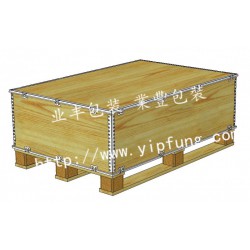 1,六面組合式。指通過鋼邊和膠合板的壓合形成包裝箱的六個面,其中頂蓋和底面采用全圍鋼邊結構,其他四面采用鋼邊和舌型扣結構。組裝時先把立的四面