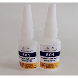 一、 產品介紹:501是一種單組分、室溫固化的無白化膠水,適用于金屬(鐵、銅、鋁等)與塑料(如ABS、PVC、PC、PS、PPS、TPE、TPV、PP、亞克力等)的自粘或互粘,本膠水具有操作方便,優良的粘接強度。