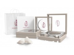 燕窩乃自然與生靈的饋贈,皆為天地之物,故取天圓地方之意。此外,圓形也象征燕子的巢,即燕窩。香檳色的寧靜與亞克力的通透相得益彰,十分契合燕窩作為女性滋補品的特性,也傳達出了燕窩滋補的感受。
